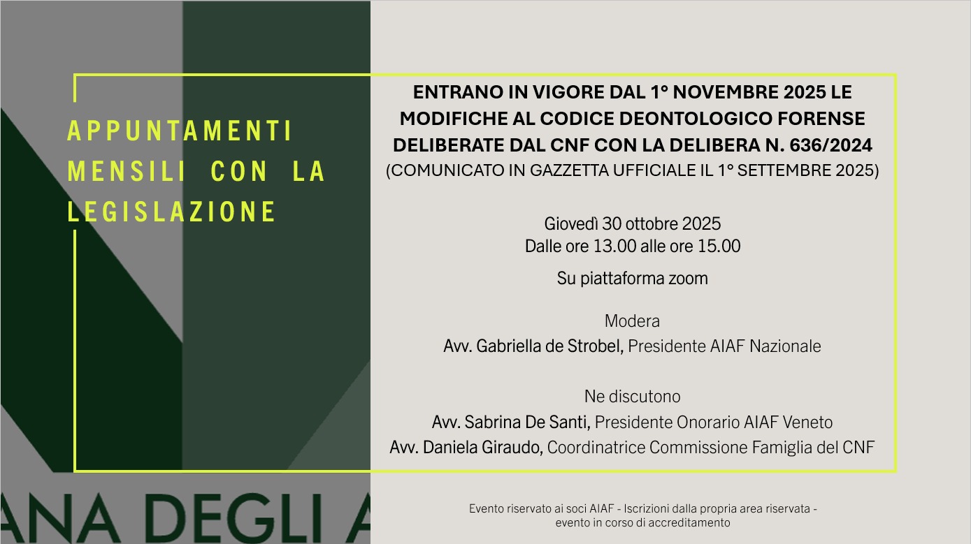 ENTRANO IN VIGORE DAL 1° NOVEMBRE 2025 LE MODIFICHE AL CODICE DEONTOLOGICO FORENSE